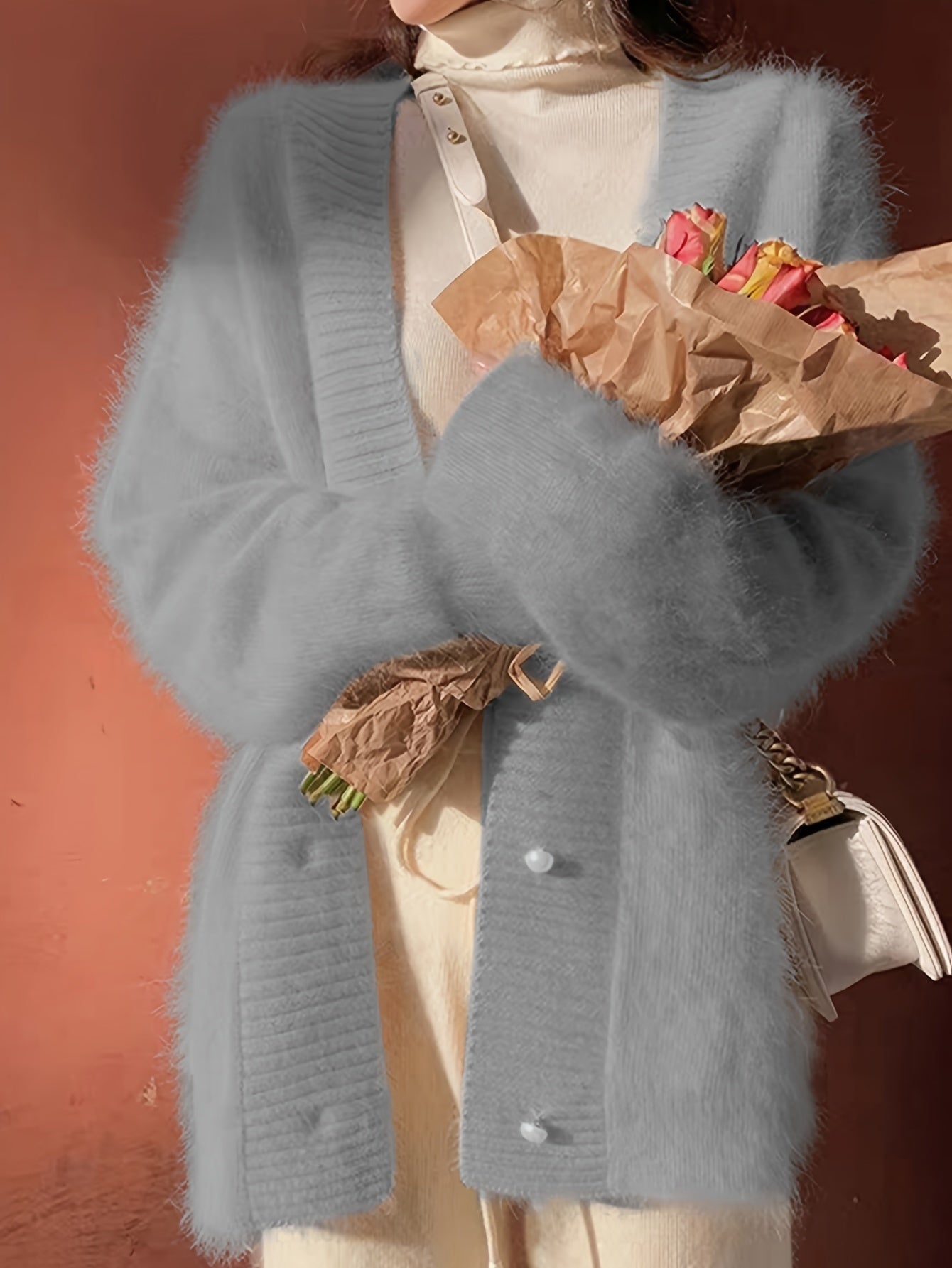 Skap et sofistikert utseende med Tuva™, en stilren og elegant cardigan perfekt for kjøligere dager. Den v-halsede designen og klassiske knappingen gjør den til et allsidig plagg som enkelt kan brukes både til hverdags og ved spesielle anledninger.