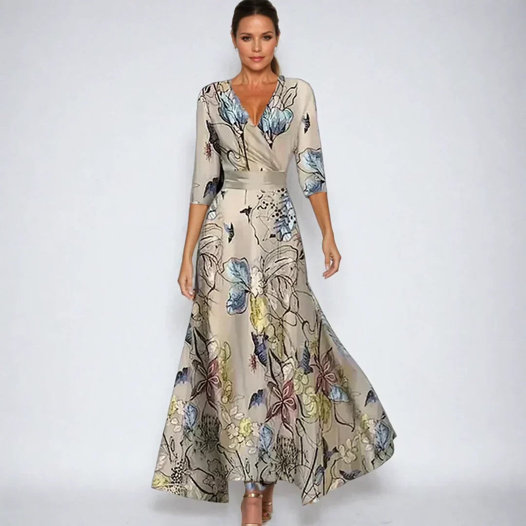 Det lette, flytende stoffet smigrer silhuetten din, mens det romantiske blomsterdesignen tilfører et lekent og feminint preg. Den elegante designen med V-hals, trekvartlange ermer og et belte som fremhever figuren gir et stilrent og selvsikkert inntrykk.